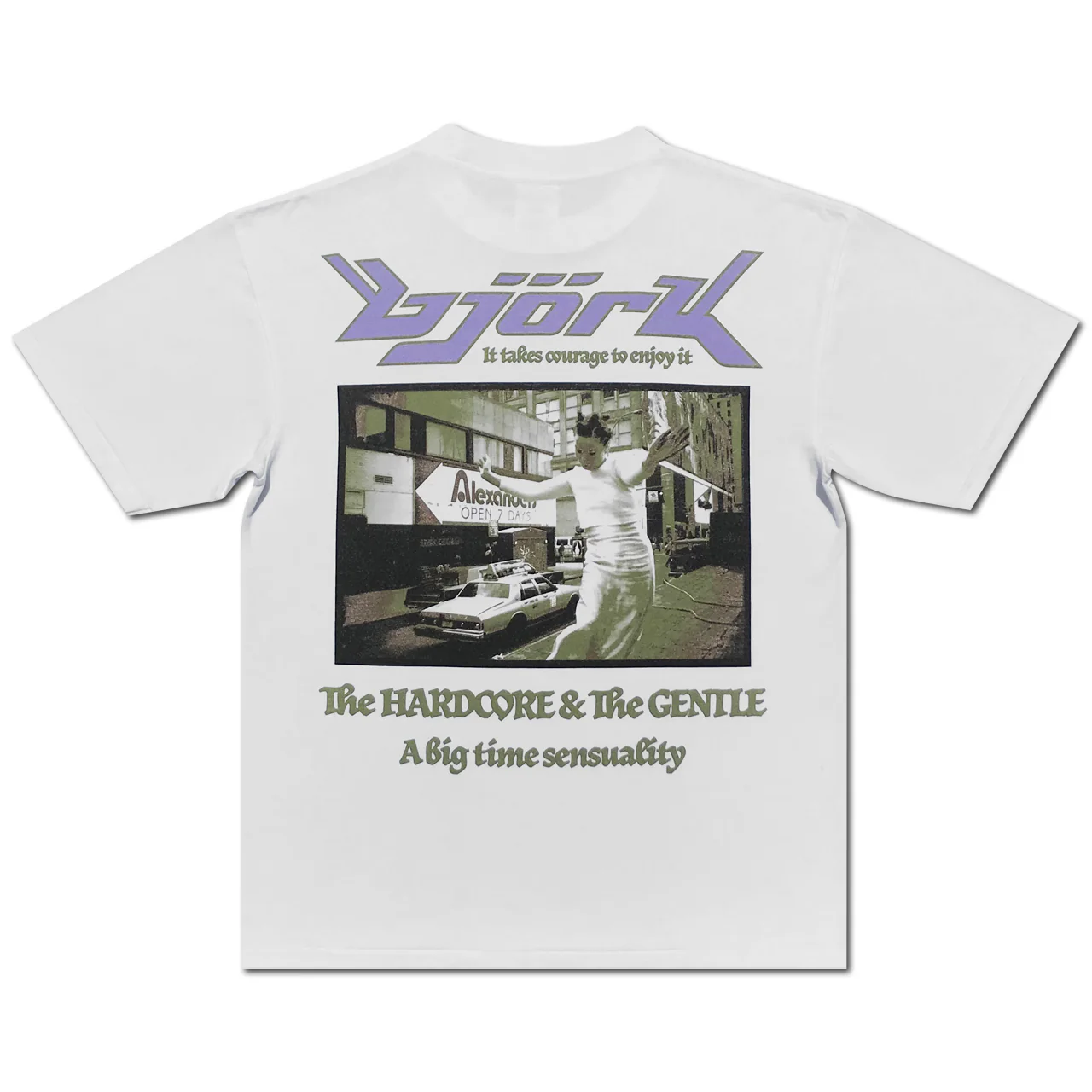 This is a short-sleeved T-shirt featuring Björk's cute face.